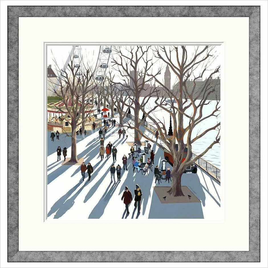 The framed print is mounted as described and then framed in a 2cm x 2cm square profile moulding with a warm silver finish called 'Champagne'. Supplied strung and ready to hang.